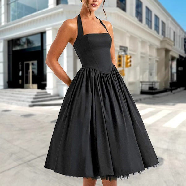 Damen A-Linien Cocktailkleid mit schulterfreiem Design und voluminösem Rock Heidi-Mode