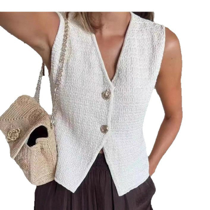 • Stilvolles Design: Mit einem modernen V-Ausschnitt und dekorativen Knöpfen verleiht diese Weste Ihrem Outfit einen Hauch von Raffinesse.