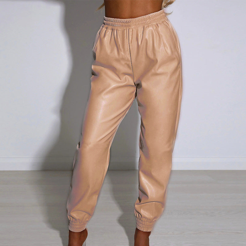 Damen Bequeme Kunstleder Jogginghose Heidi-Mode