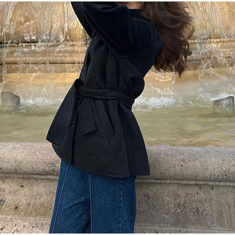Damen bequeme Trenchcoatjacke mit Gürtel und voluminösen Ärmeln Heidi-Mode