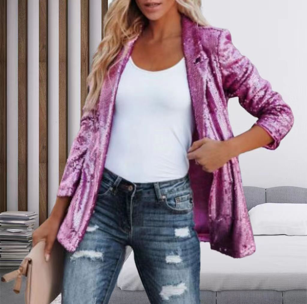 Verleihen Sie Ihrem Look mit diesem glamourösen Damen-Blazer mit Paillettenbesatz eine aufregende Note! Ideal für Partys, Festlichkeiten oder besondere Anlässe, sorgt dieses stylische Kleidungsstück für garantiertes Aufsehen.