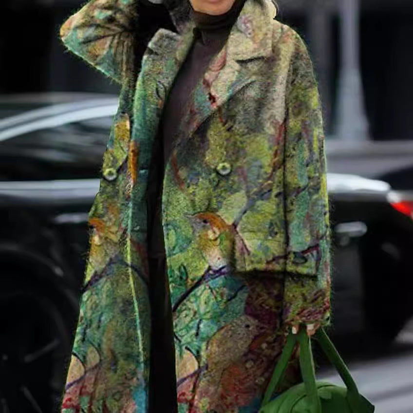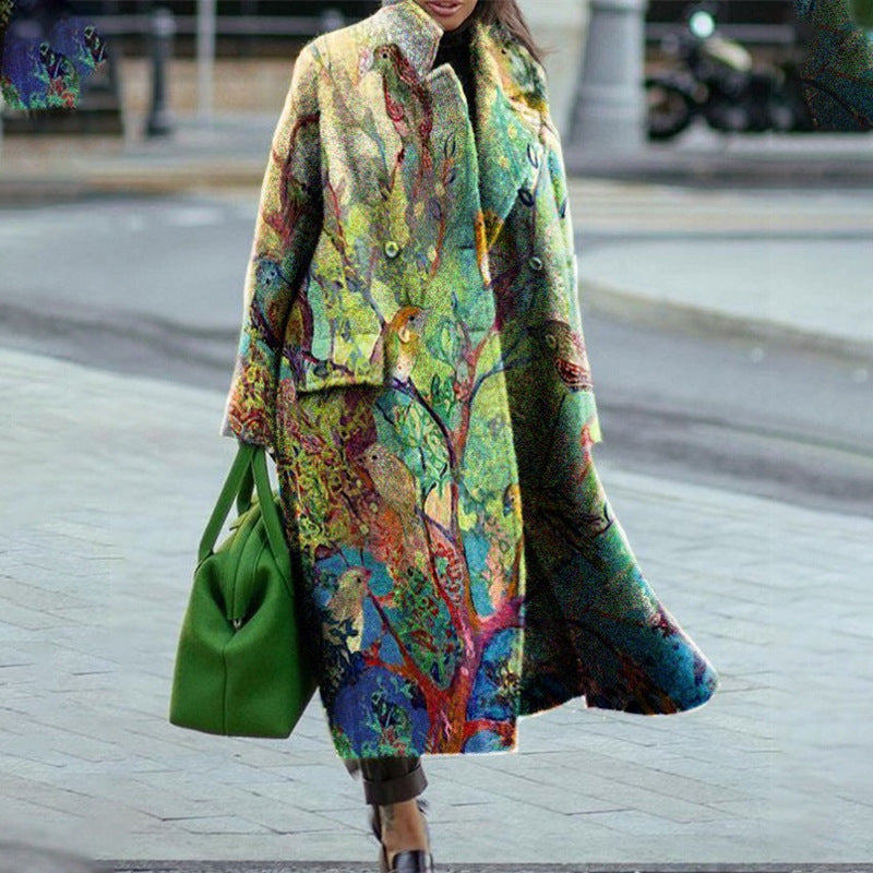 Entdecken Sie unseren Damen Blumenmuster Maxi-Mantel, der mit seinem auffälligen floralen Design und eleganten Reverskragen ideal für jede Gelegenheit ist. Dieser stilvolle Mantel überzeugt durch seine fließende Silhouette und zaubert eine feminine Ausstrahlung.