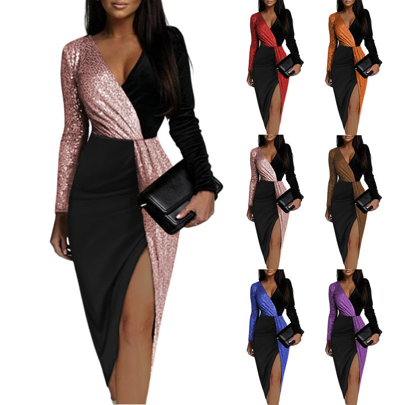 Damen Bodycon Abendkleid mit glitzerndem Detail und tiefem V-Ausschnitt Heidi-Mode