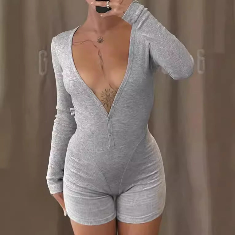 Damen Einteiler mit modernem Schnitt und Knopf-Detail Heidi-Mode