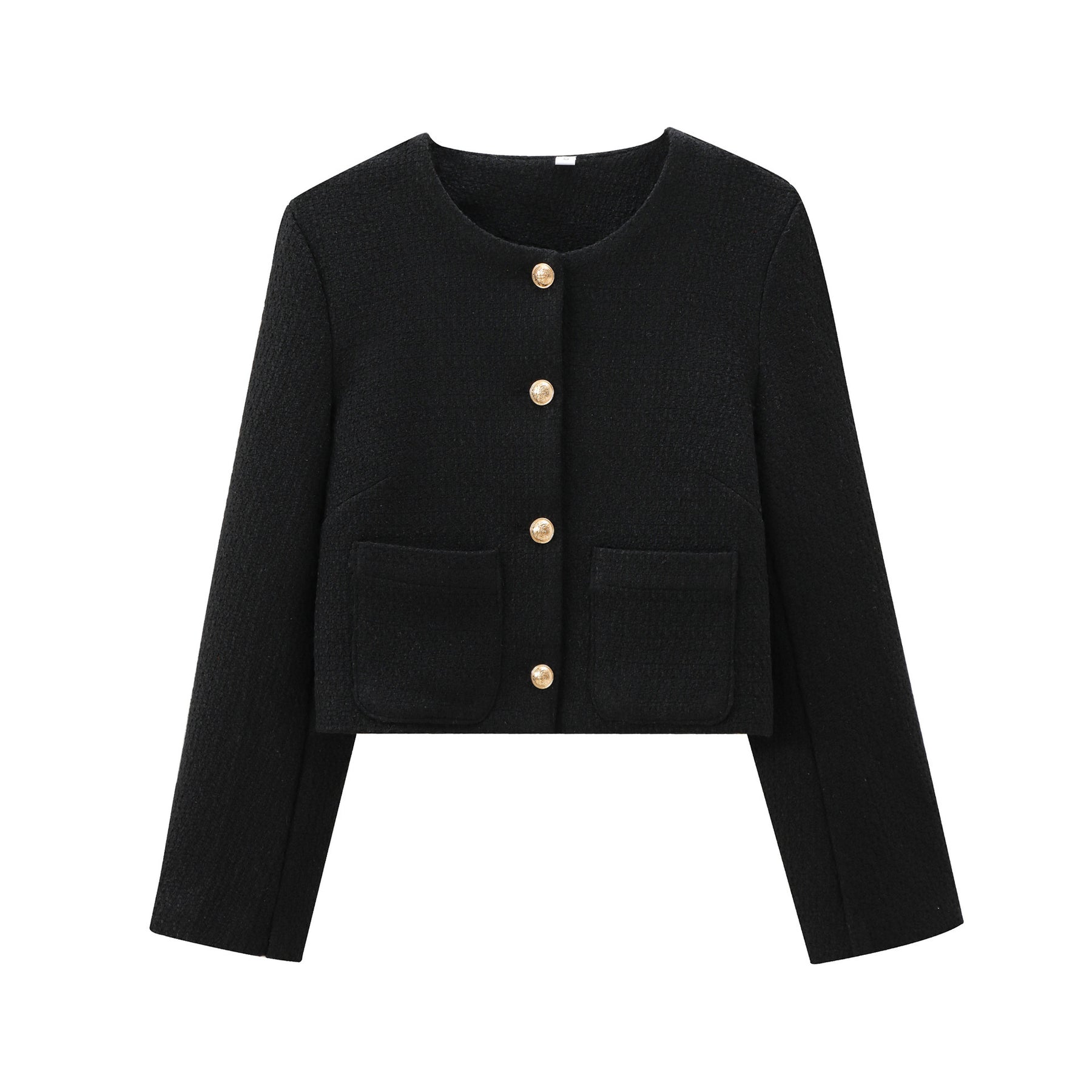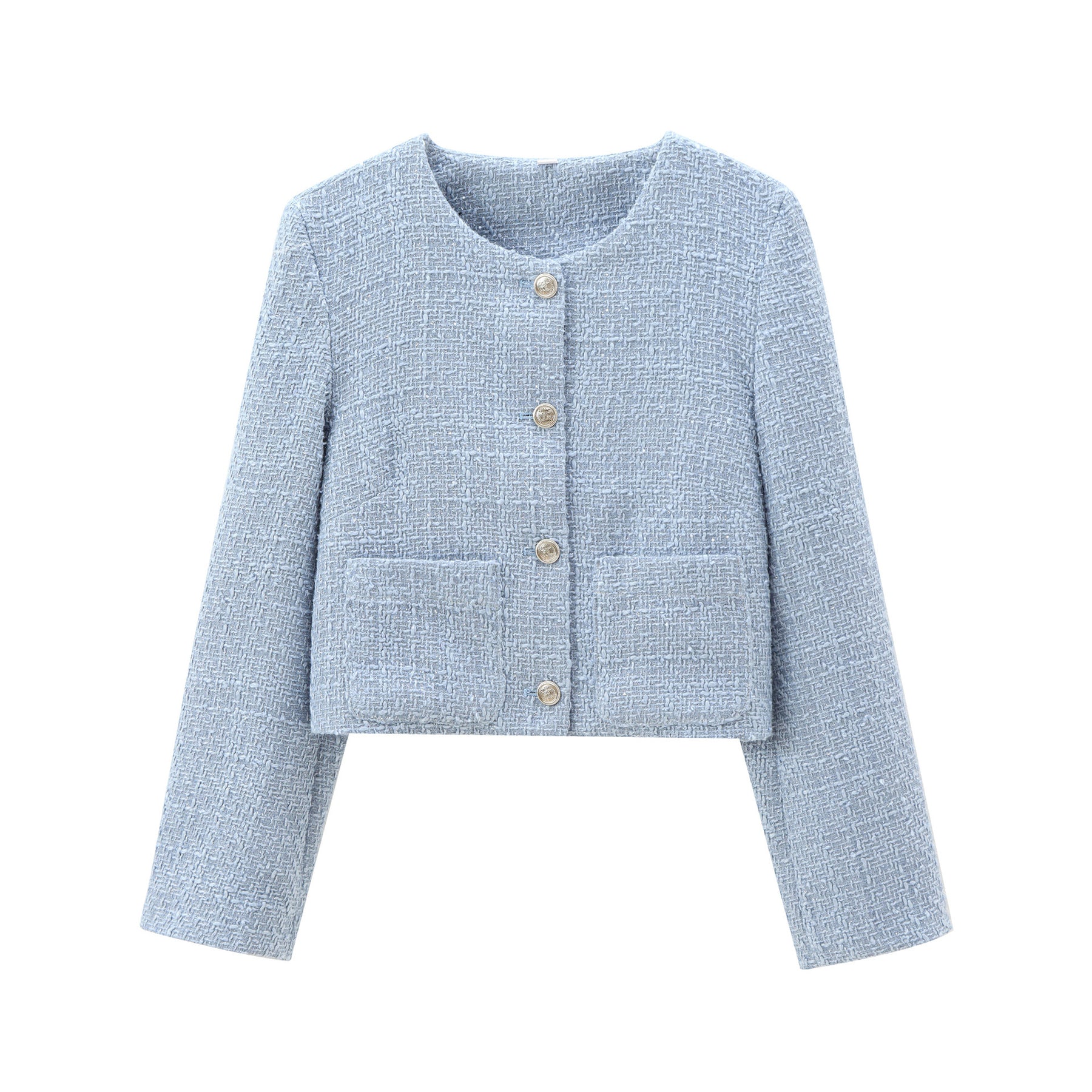 Damen elegante Kurzjacke im strukturierten Tweed-Stil mit praktischen Taschen Heidi-Mode