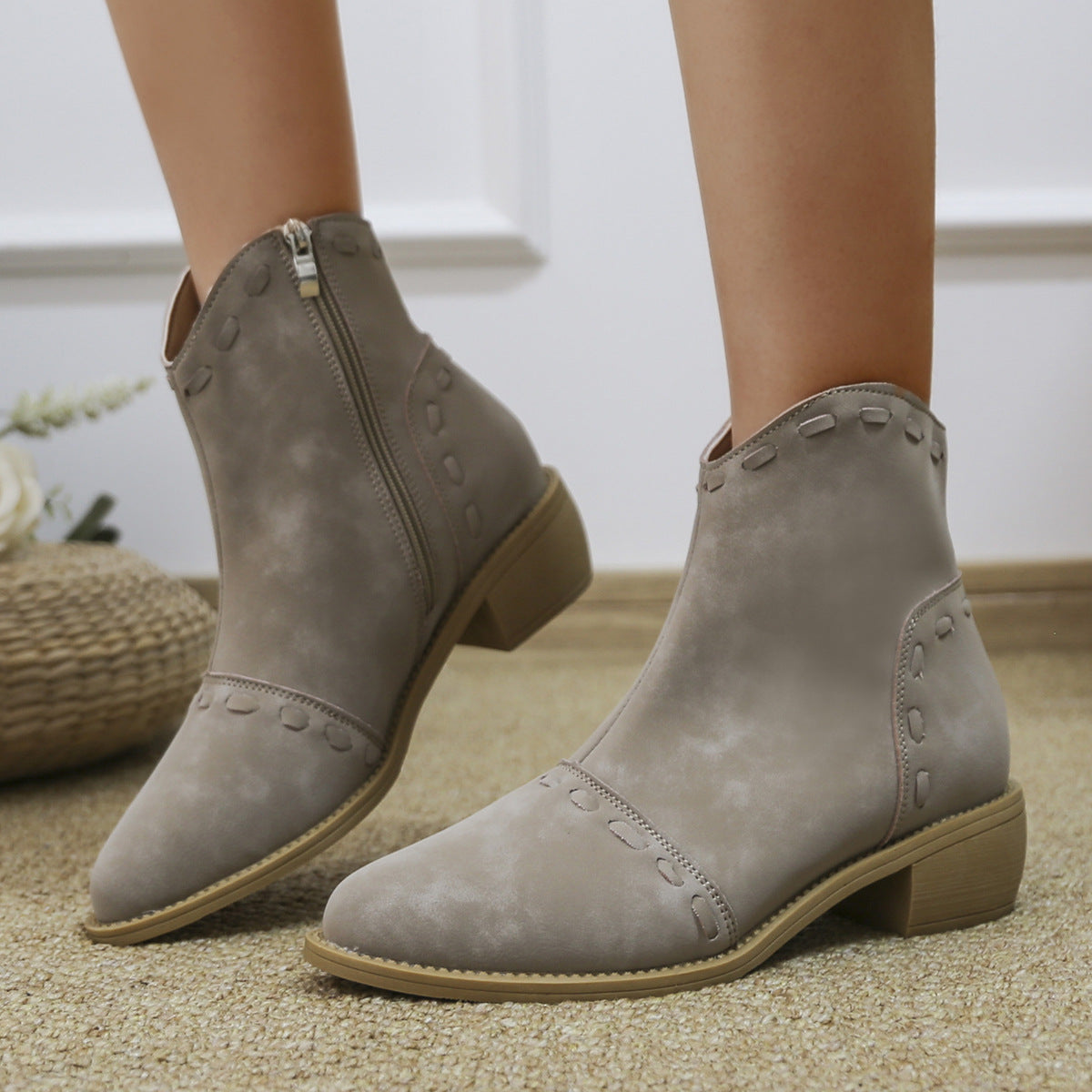 Damen elegante Stiefeletten mit modischen Ziernähten und praktischen Reißverschluss Heidi-Mode