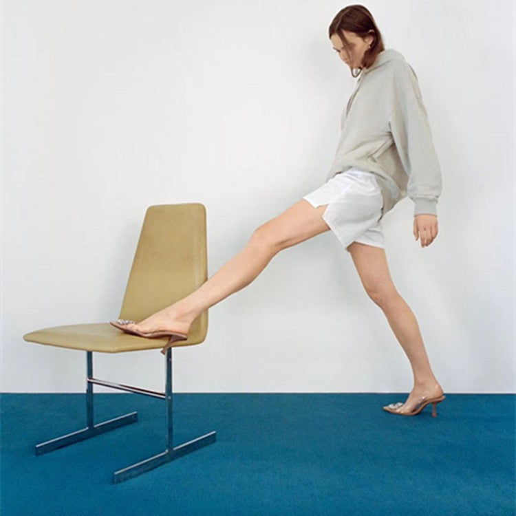 • Transparente Obermaterialien: Luxuriöses und leichtes Design, das Ihre Füße perfekt in Szene setzt.