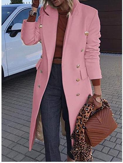 • Modisches Design: Der auffällige, tief angeschnittene Kragen und die goldenen Knöpfe verleihen dem Mantel eine elegante Note.