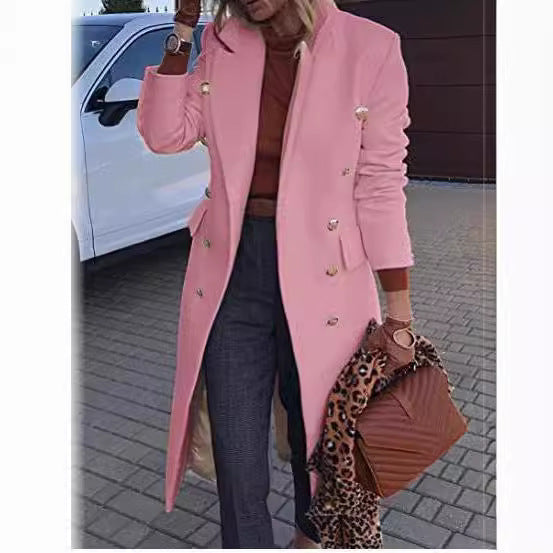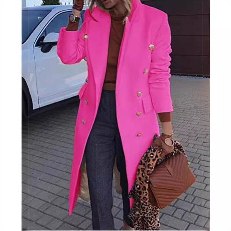 Damen Eleganter Doppelreiher-Mantel mit goldenen Knöpfen und taillierter Passform Heidi-Mode
