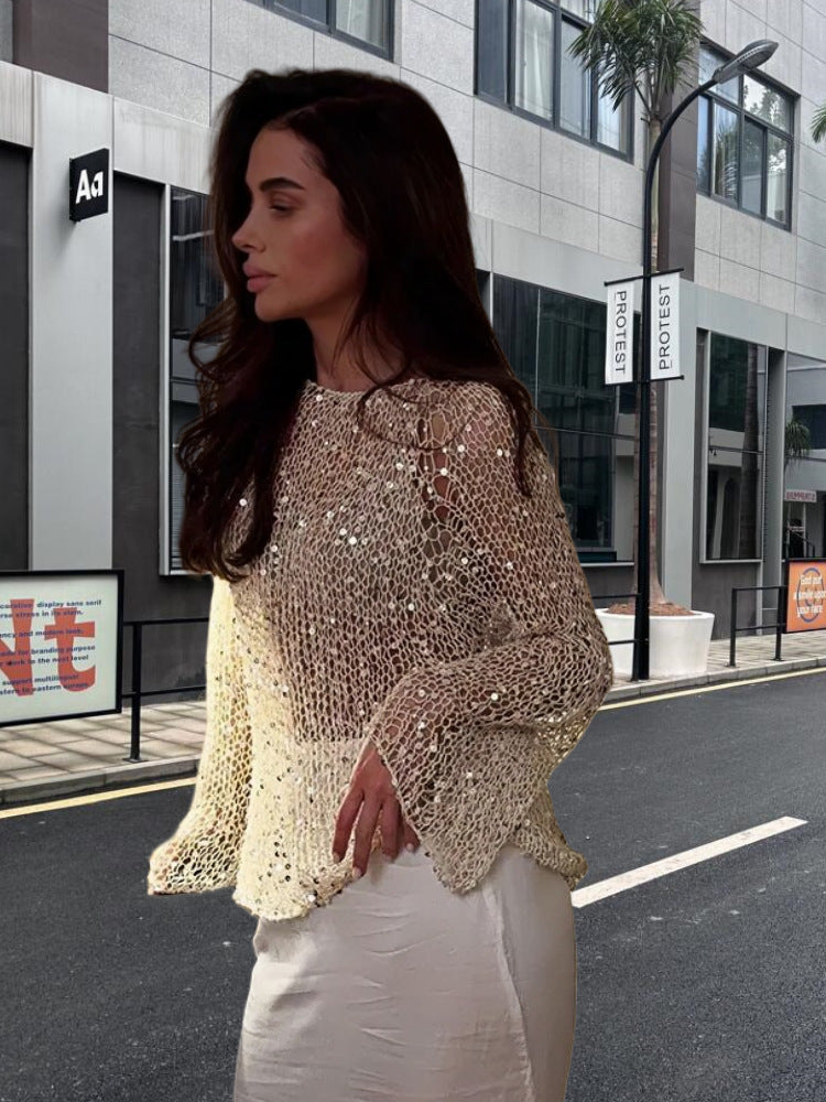 Dieser Häkelpullover wird schnell zu Ihrem neuen Lieblingsstück. Setzen Sie ein modisches Statement und genießen Sie den Komfort und die Eleganz dieses einzigartigen Designs!
