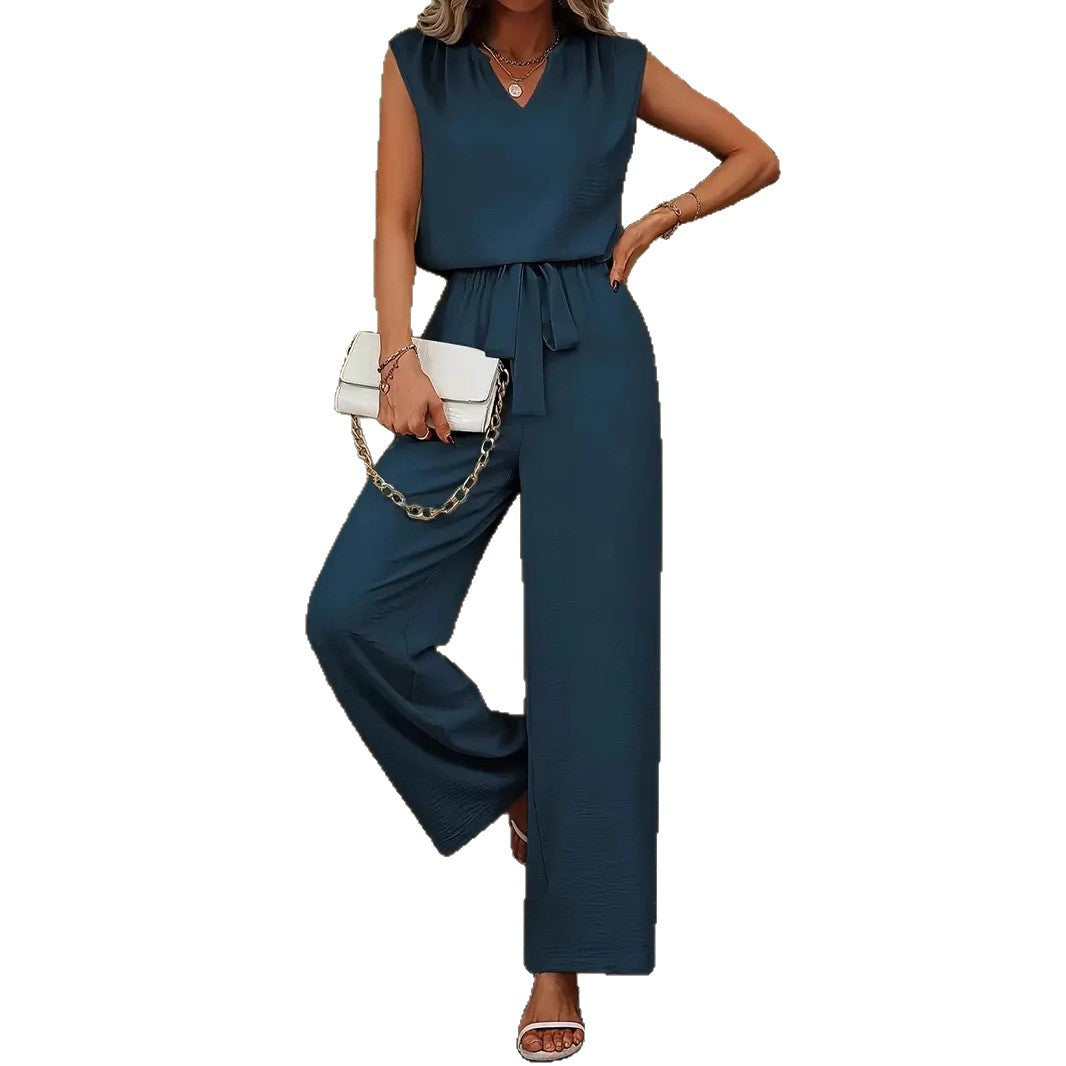 Damen Eleganter Jumpsuit mit V-Ausschnitt und Taillenknoten Heidi-Mode