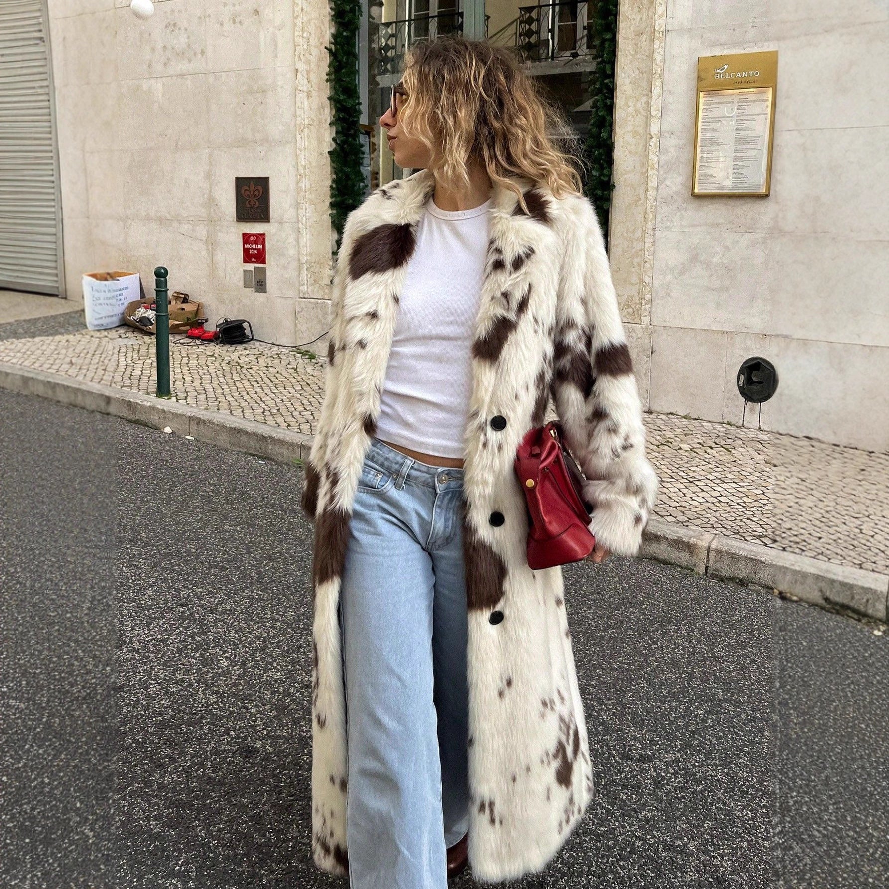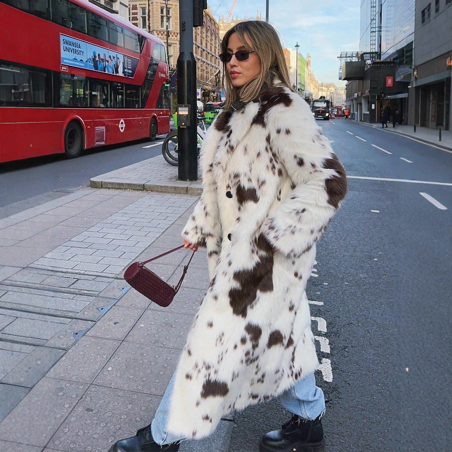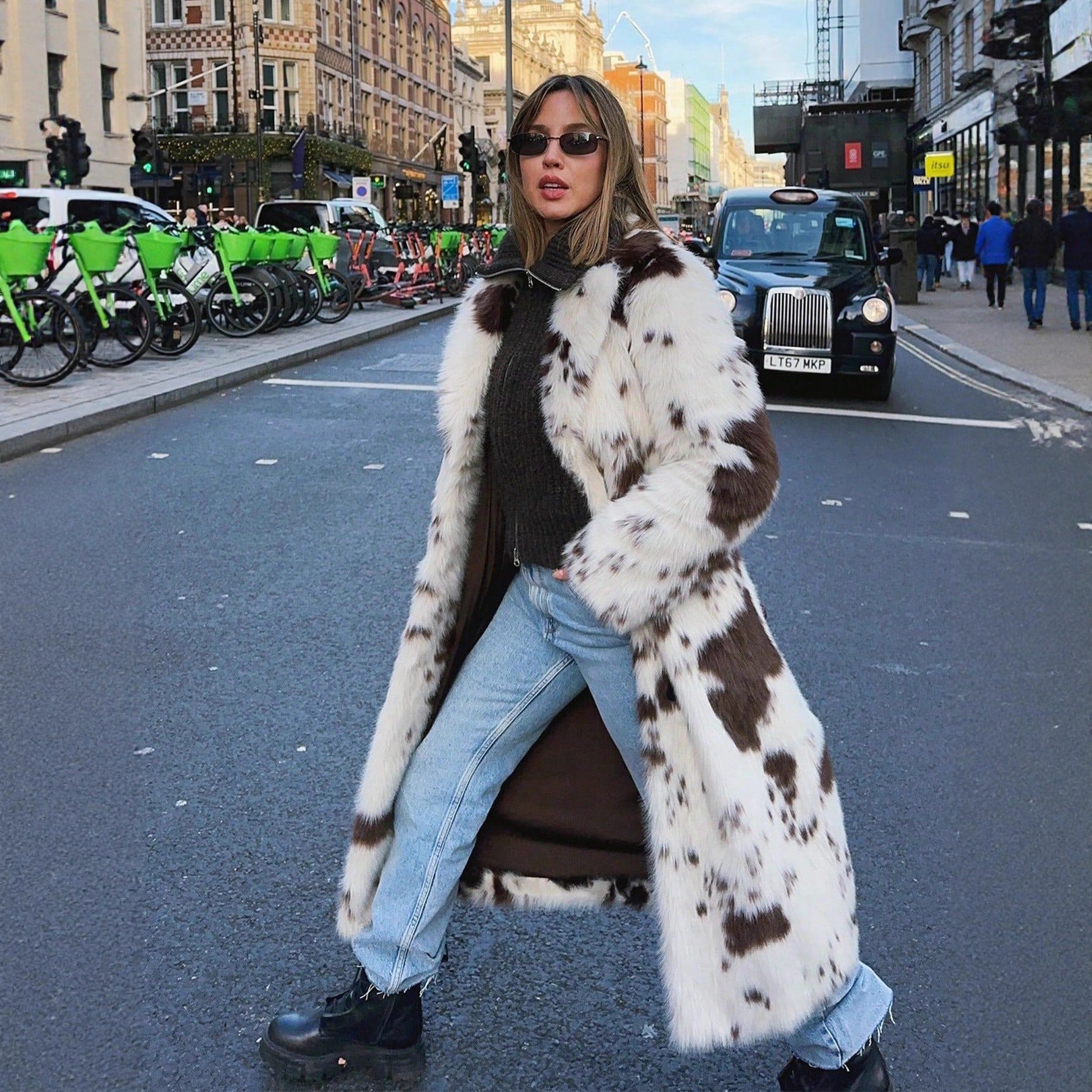 Damen eleganter Kunstpelzmantel im modernen Tiermuster Heidi-Mode