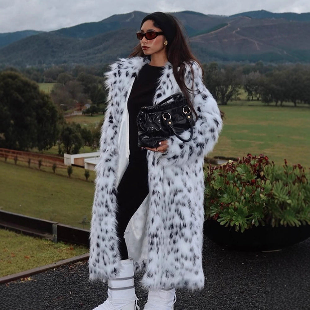 Damen Eleganter Kunstpelzmantel mit luxuriösem Muster Heidi-Mode