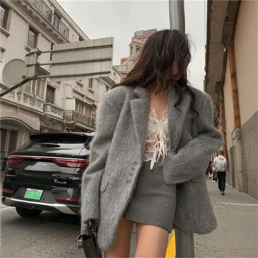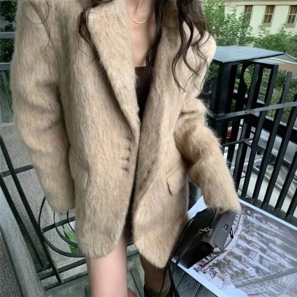 Damen eleganter Wollblazer mit weichem Fleece-Finish Heidi-Mode