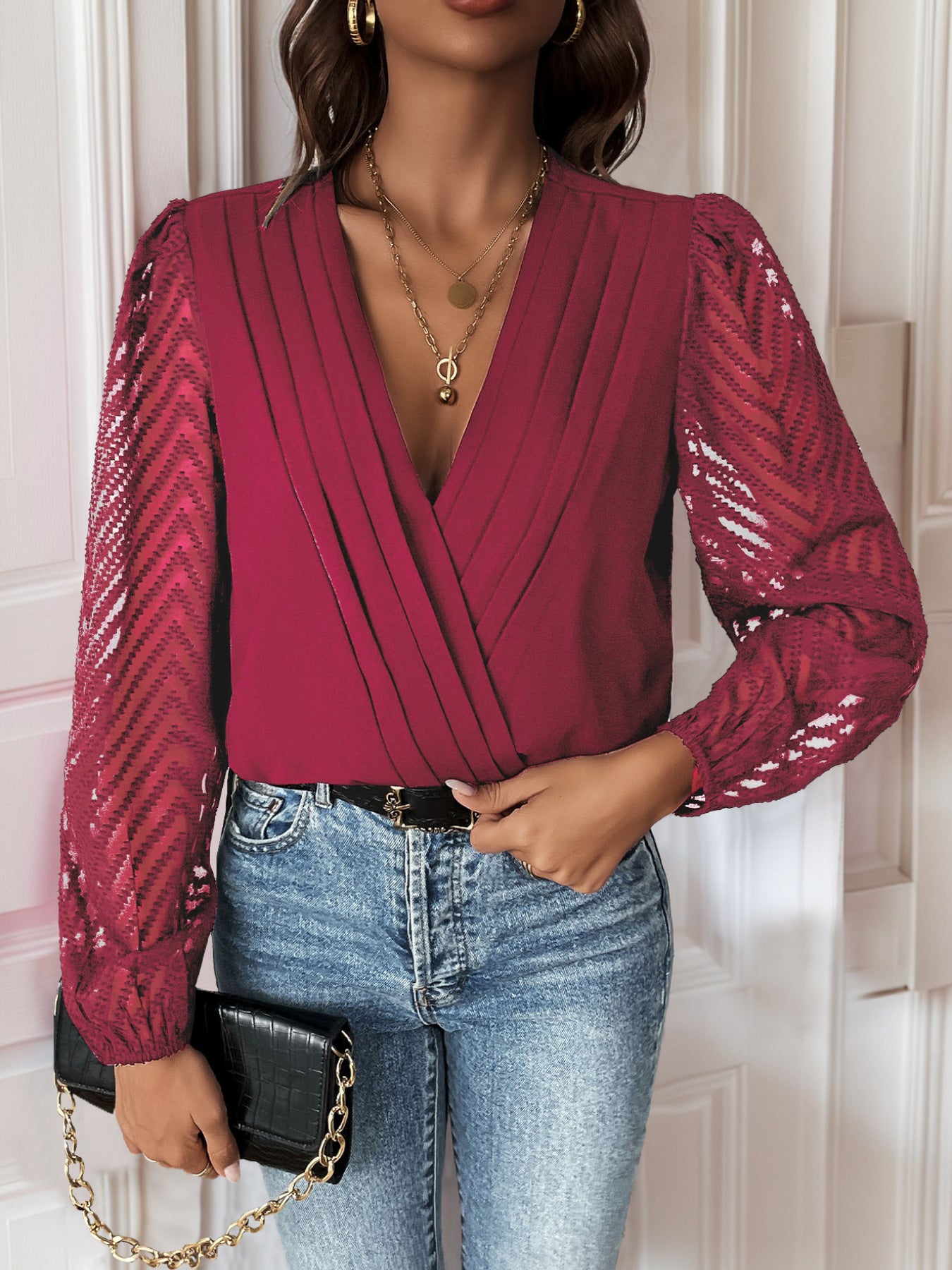 Damen elegantes Body mit voluminösen Ärmel und tiefem V-Ausschnitt Heidi-Mode