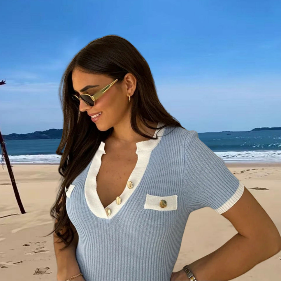 • Modisches Design: Das Kleid verfügt über einen zeitlosen Look mit modischen Knopfdetails, die für einen stilvollen Akzent sorgen.