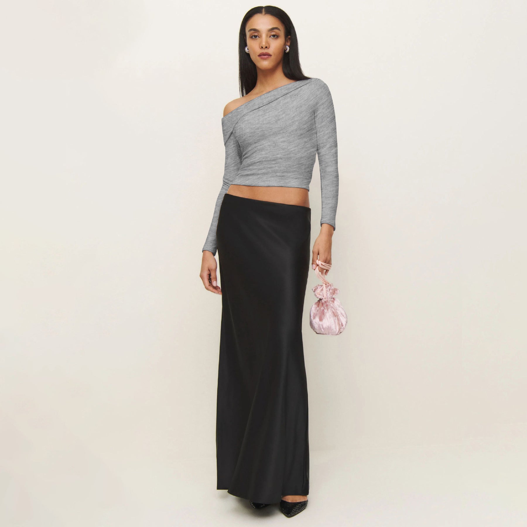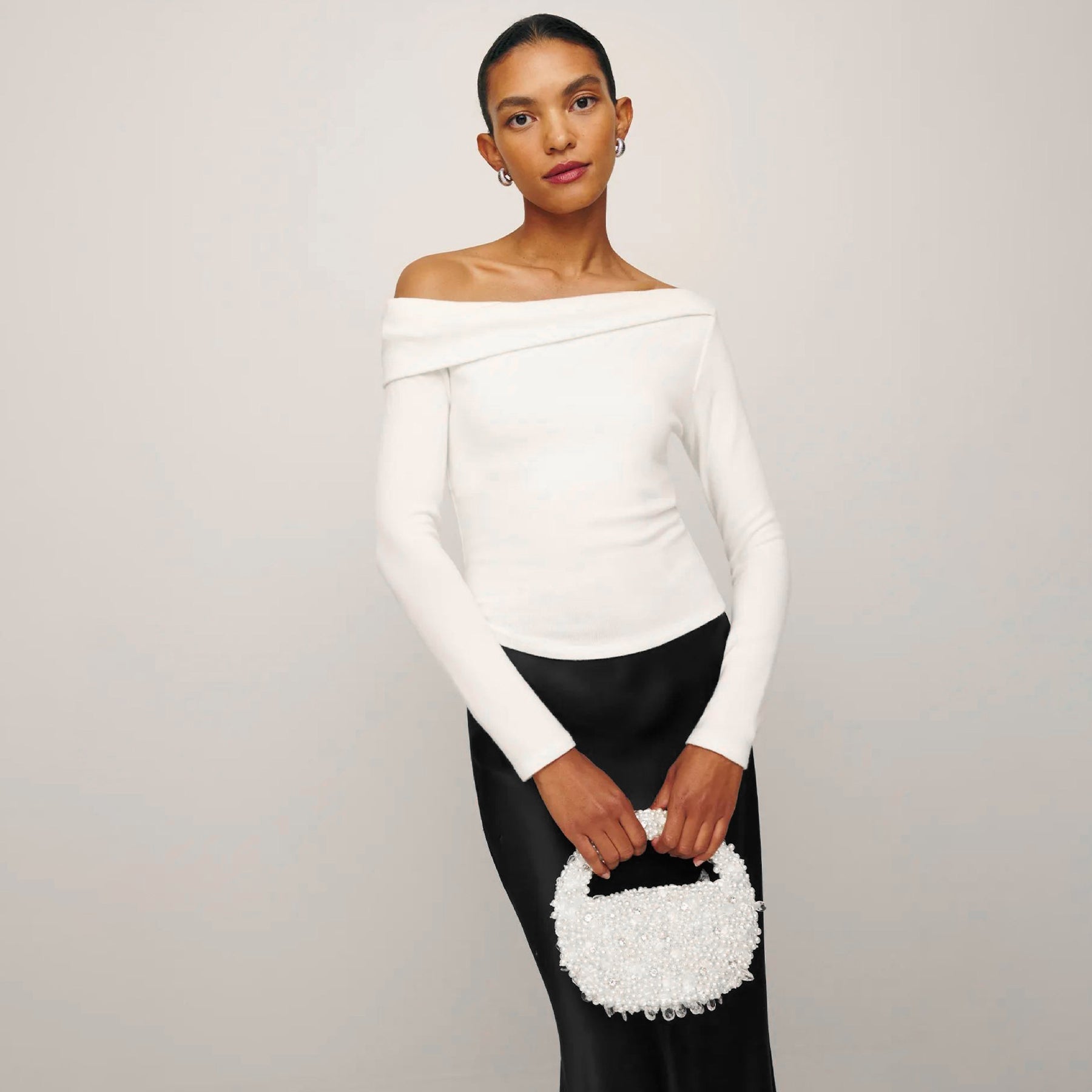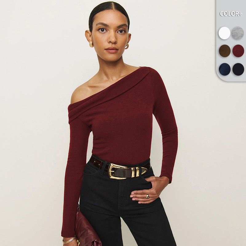 Damen Elegantes Langarmoberteil mit schrägem Ausschnitt und figurbetontem Schnitt Heidi-Mode