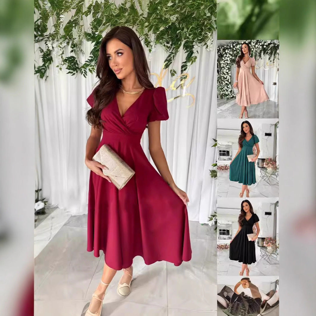 Damen elegantes Midikleid mit Wickeloptik und ausgestelltem Rock Heidi-Mode