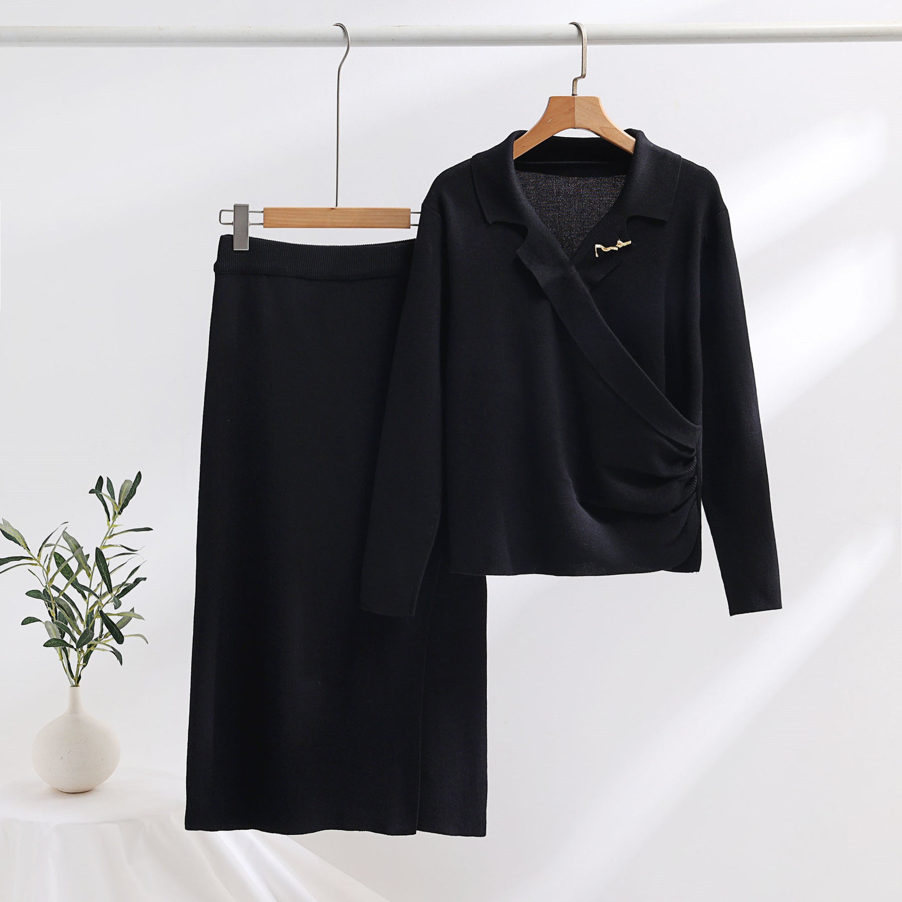 Damen elegantes Strickensemble mit Wickeloberteil und raffinierter hoher Taillierung Heidi-Mode