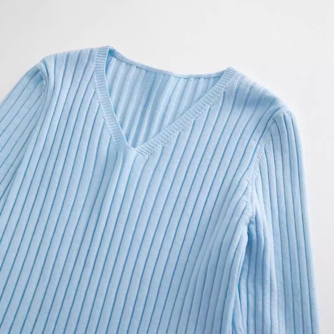 Damen Feinstrickpullover mit V-Ausschnitt und Rippstruktur Heidi-Mode