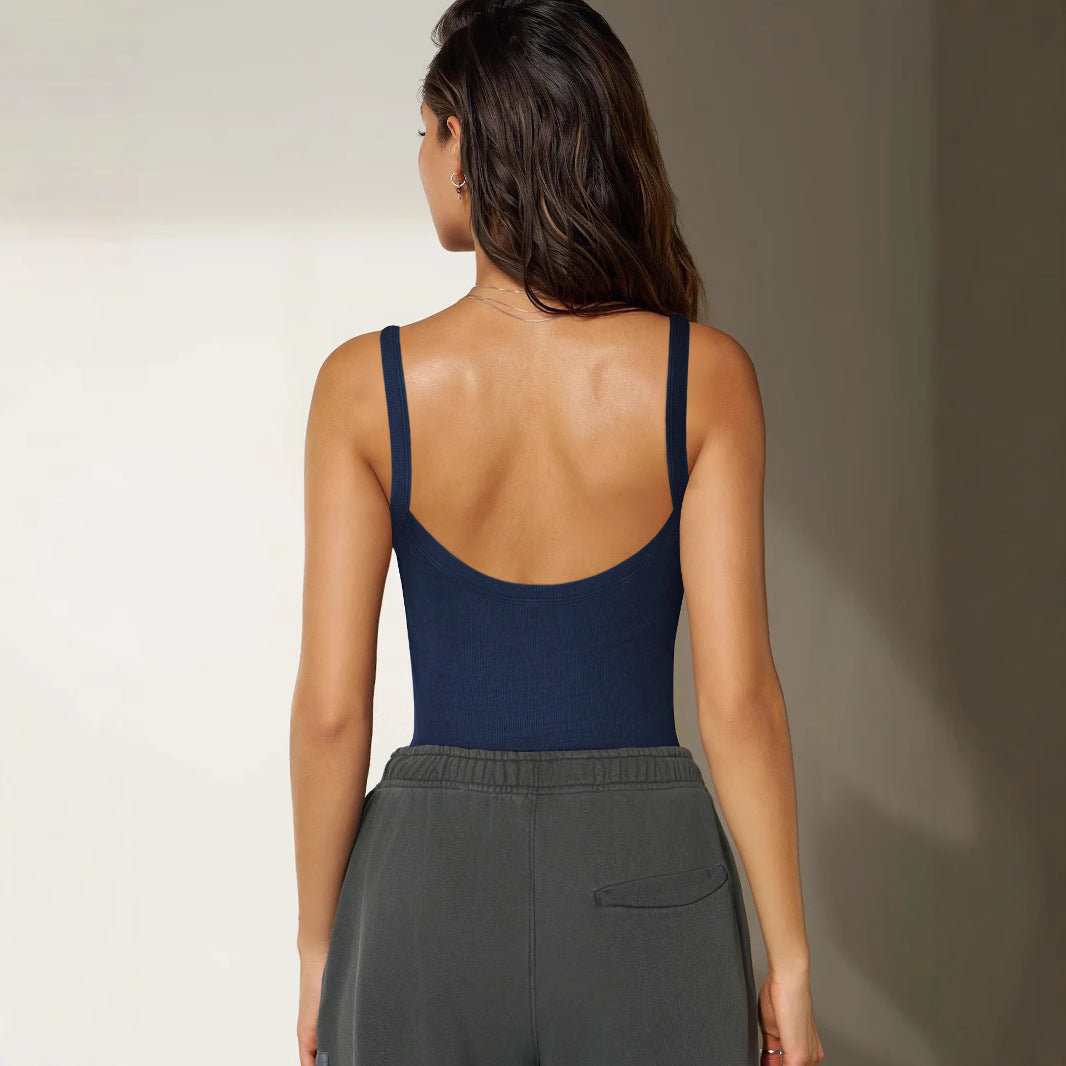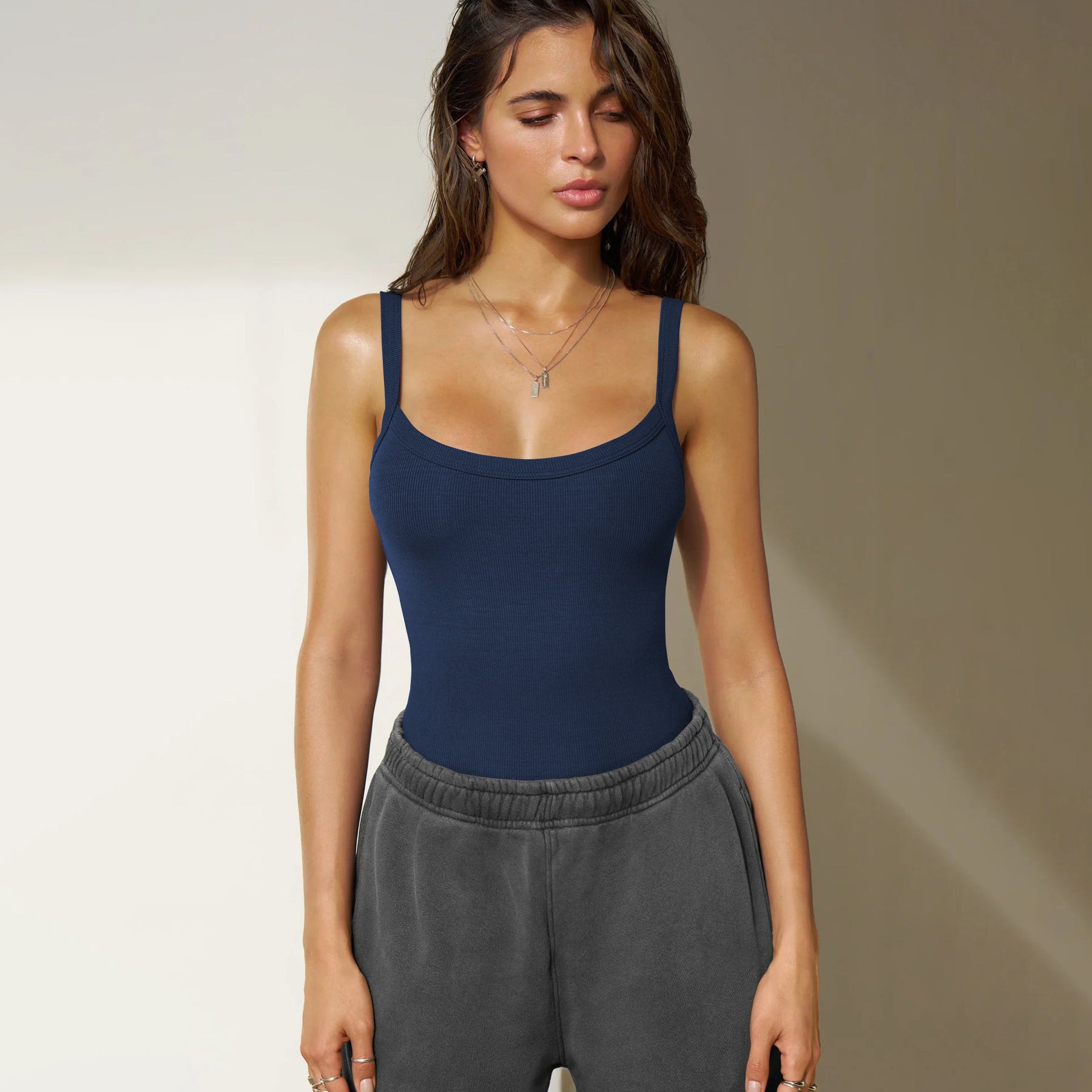 Damen Figurbetonter Body mit verstellbaren Spaghettiträgern Heidi-Mode