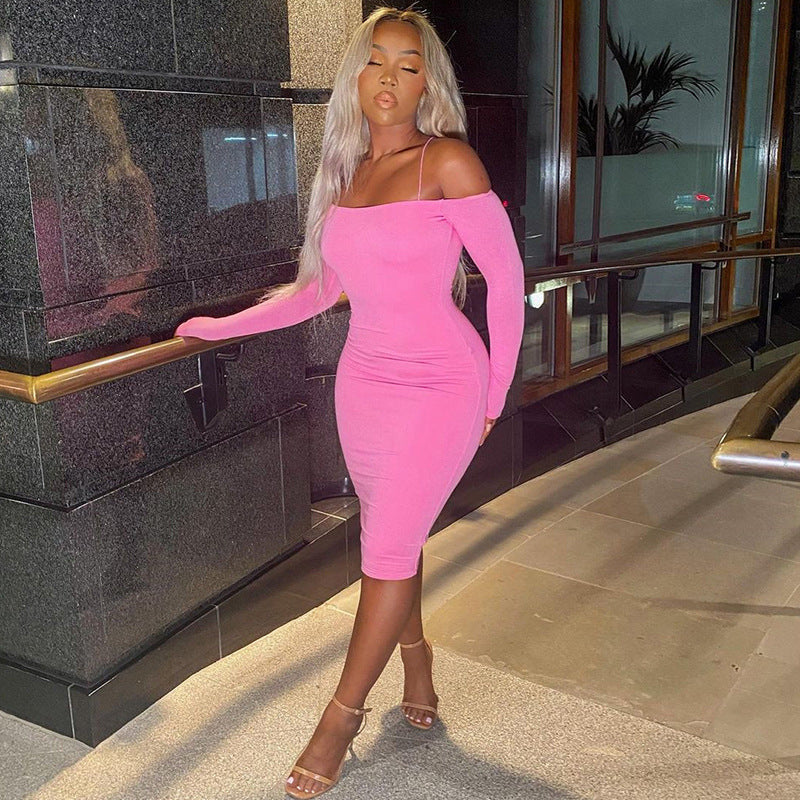 Damen figurbetontes Off-Shoulder-Minikleid mit langen Ärmeln Heidi-Mode