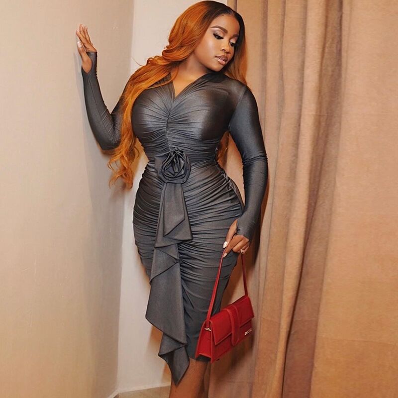 - Elegantes Design: Das Kleid verfügt über einen raffinierten Wickelausschnitt, der Ihrer Figur schmeichelt und eine feminine Ausstrahlung vermittelt.