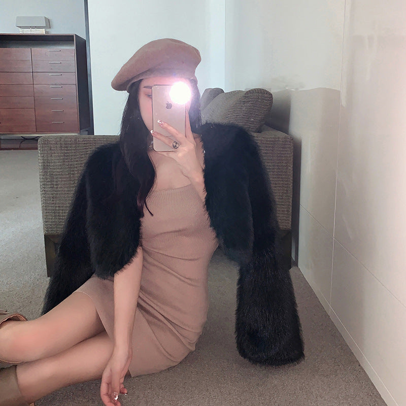 Damen Flauschige Schulterjacke mit weit geschnittenen Ärmeln Heidi-Mode