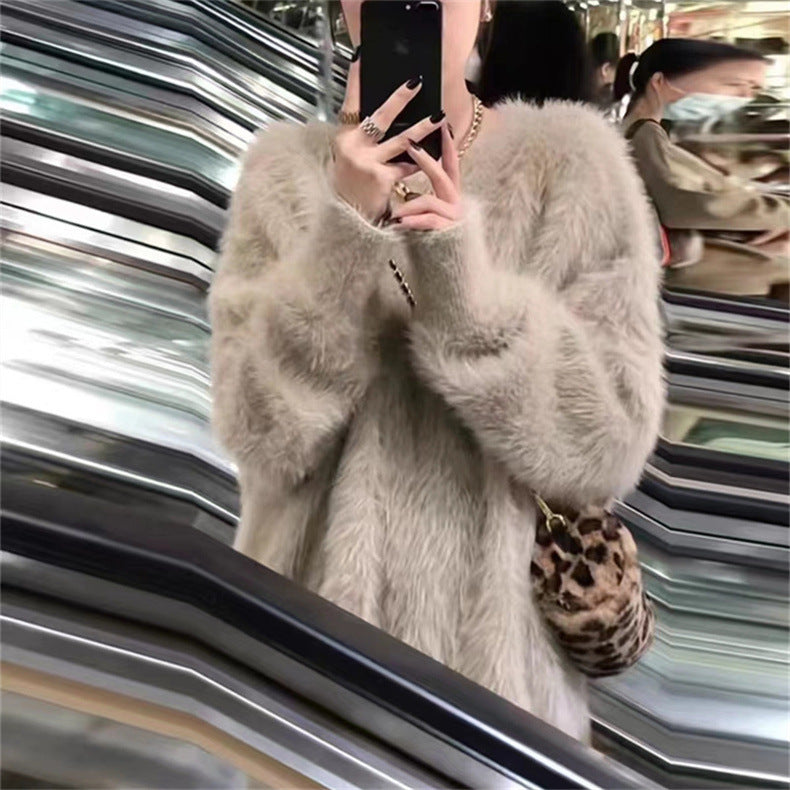 Damen Flauschiger Rundhals-Pullover mit lässigem Schnitt und oversized Passform Heidi-Mode