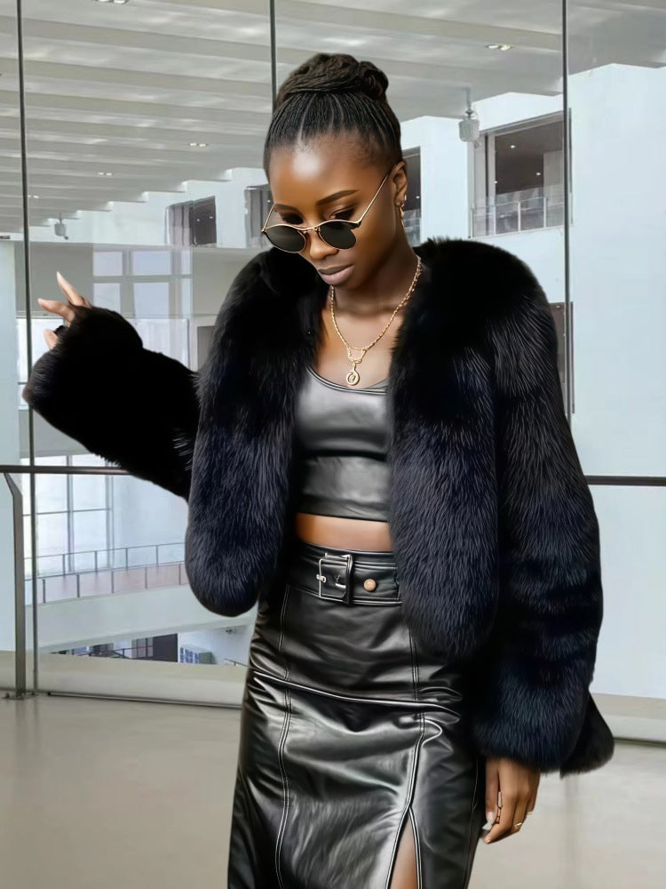 Damen Fleece Kunstpelzmantel Heidi-Mode