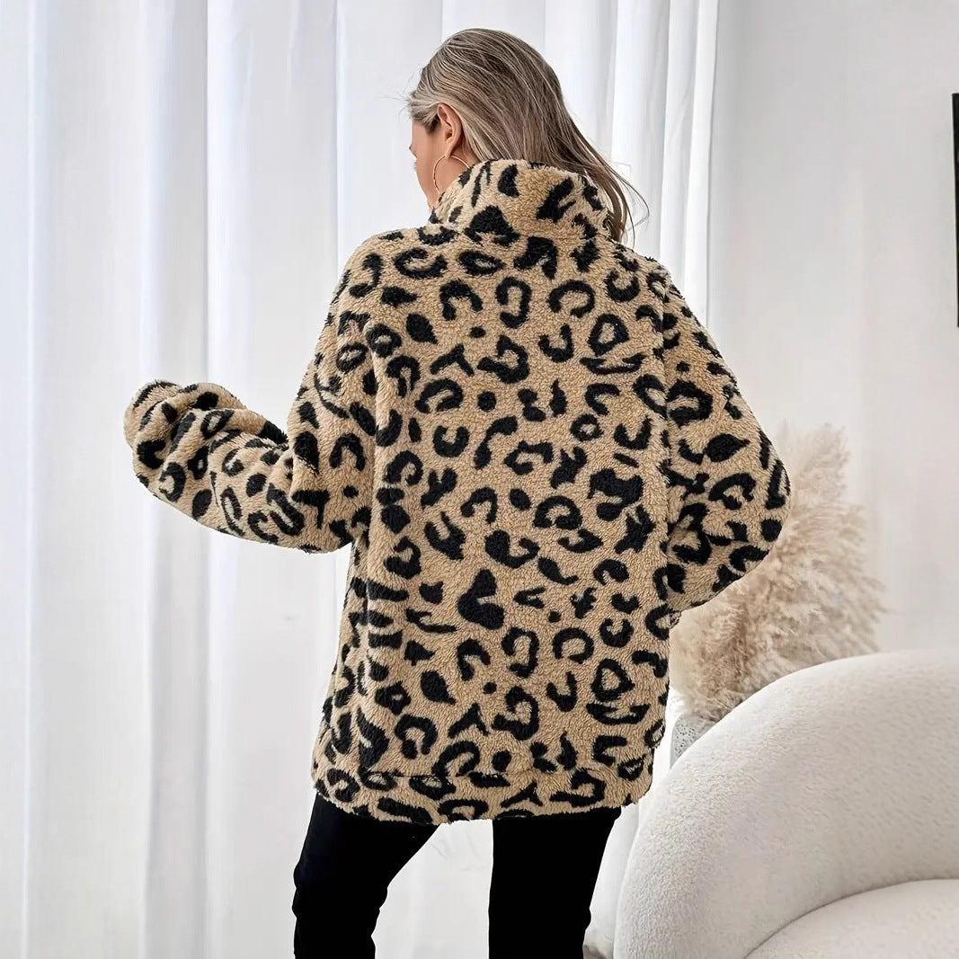 Damen Fleece-Pullover mit stylischem Leopardenmuster Heidi-Mode