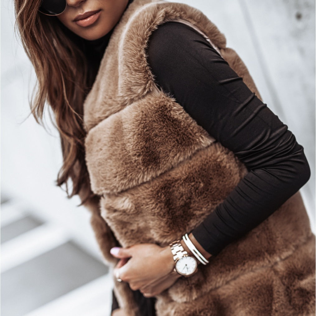Damen Fleece-Weste mit trendigem Kragen und weichem Innenfutter Heidi-Mode