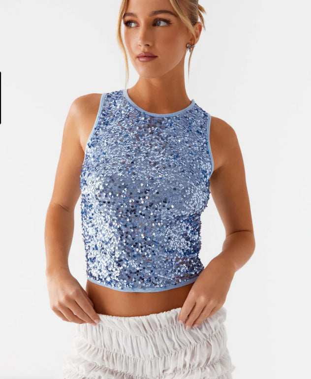 Damen Funkelndes Pailletten-Top mit Rundhalsausschnitt Heidi-Mode
