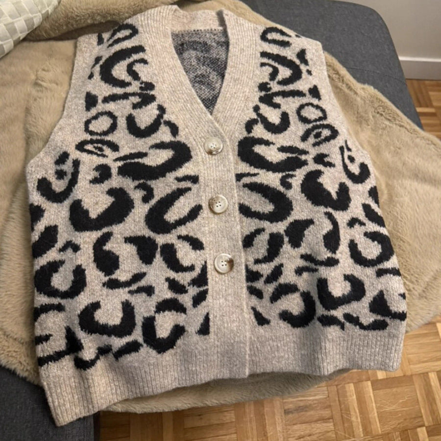 Damen Gemusterte Strickweste mit Knopfverschluss und Taschen Heidi-Mode
