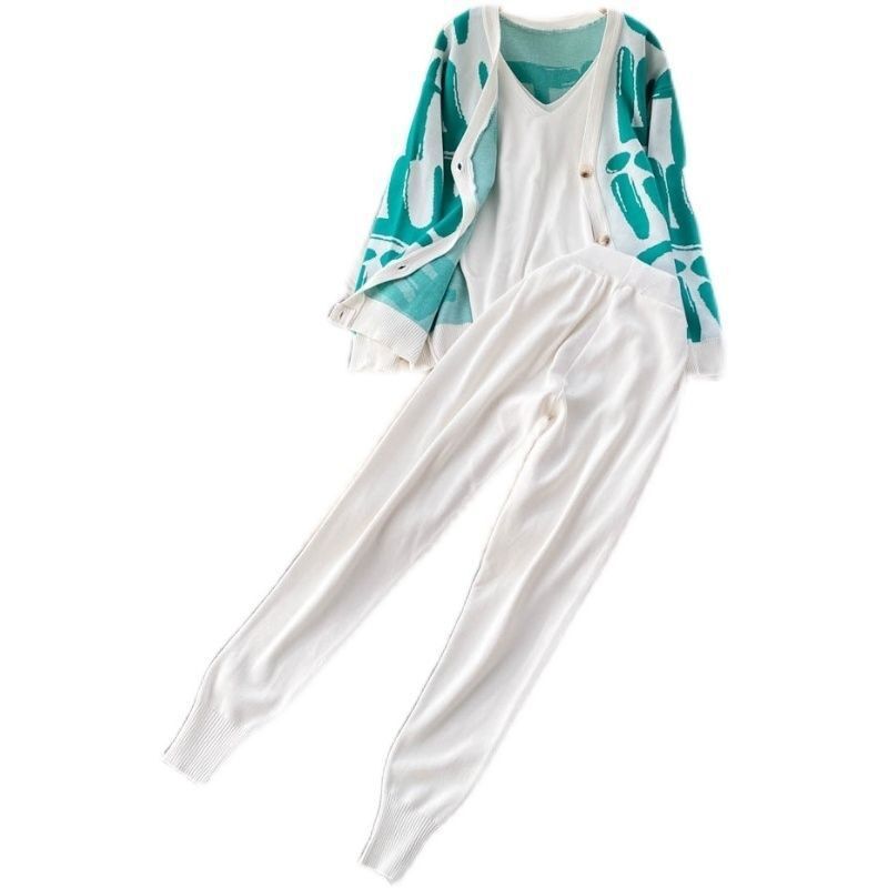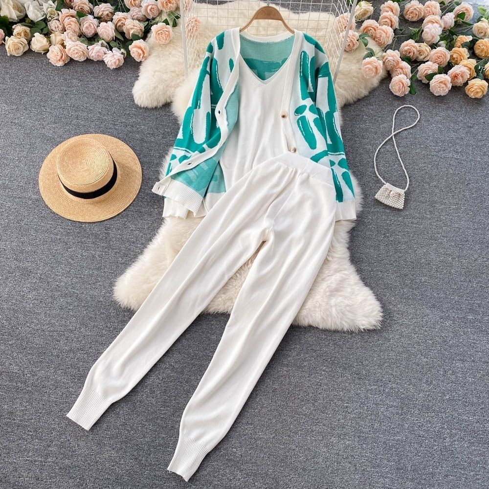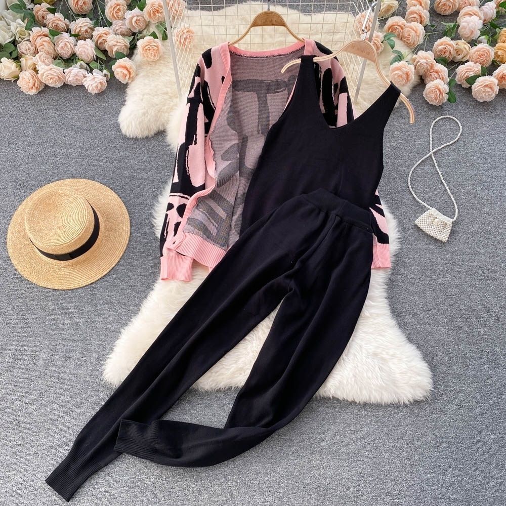 • Stylisches Design: Die Kombination aus offenem Strickcardigan und einfarbigem Unterziehanzug verbindet Eleganz mit Lässigkeit.