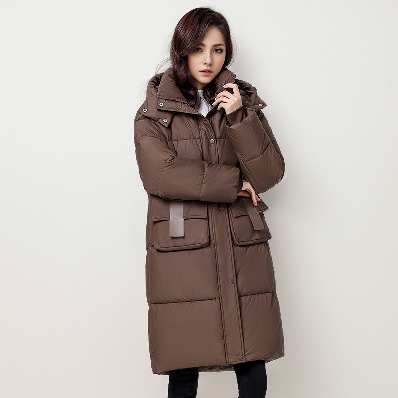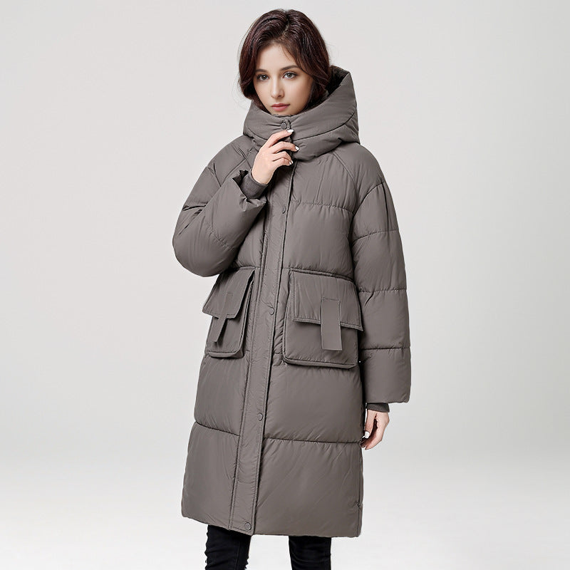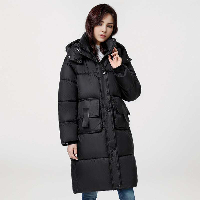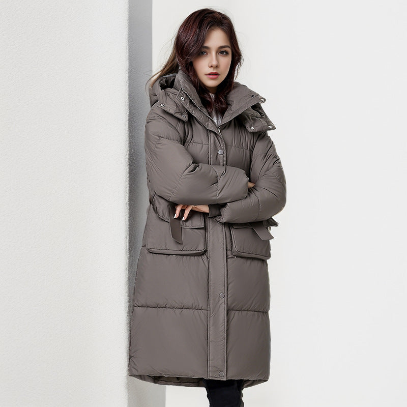 Damen gesteppter Langmantel mit wärmender Kapuze und praktischen Taschen Heidi-Mode