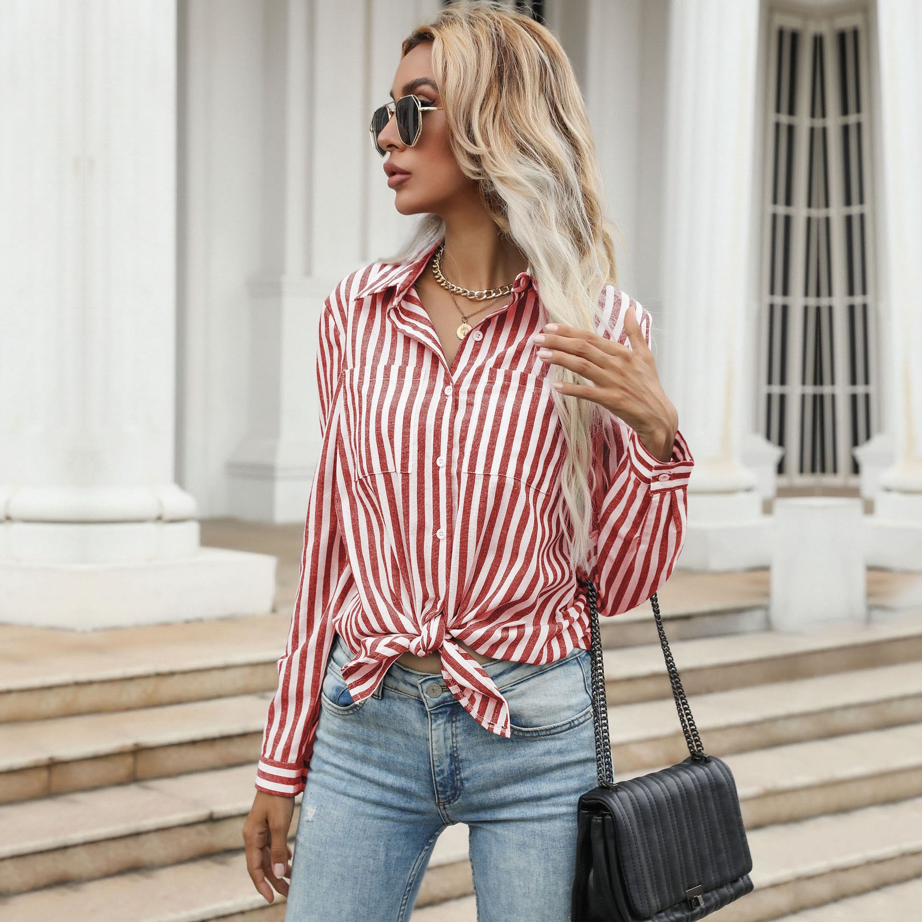 Damen Gestreiftes Langarmhemd im lässigen Chic Heidi-Mode