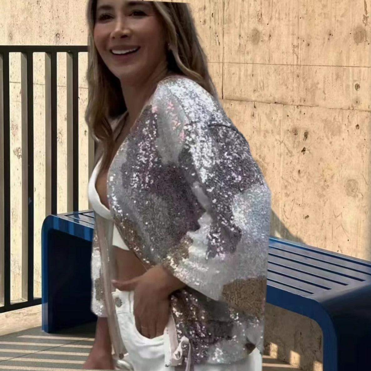 Damen Glitzernde Bomberjacke mit sportlichem Flair Heidi-Mode