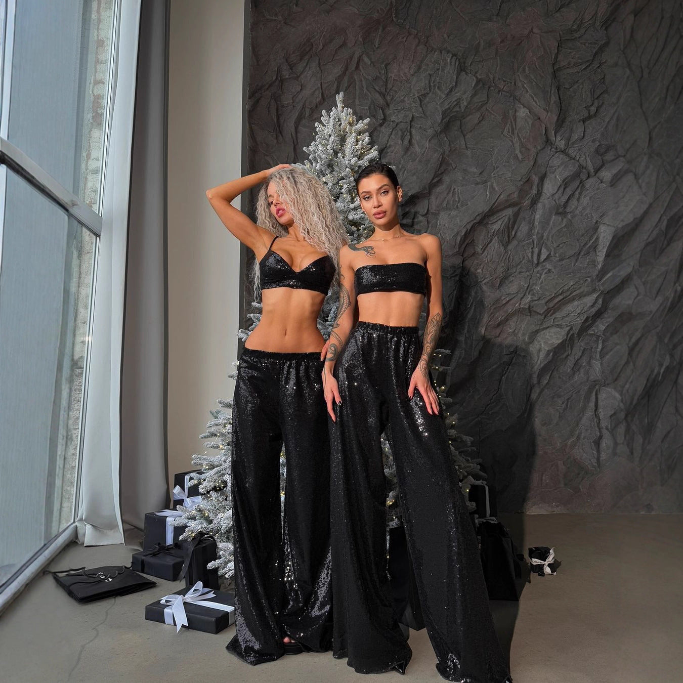 Setzen Sie mit der Damen Glitzernden Palazzo-Hose ein Statement und fühlen Sie sich in jeder Situation selbstbewusst und elegant!