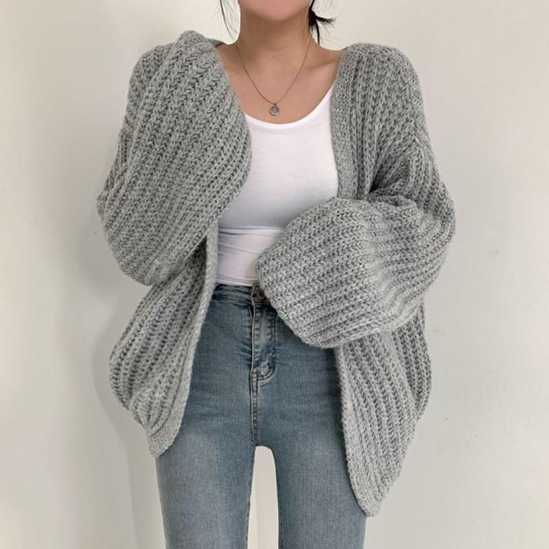 Damen grob gestrickte Oversized Cardigan mit tiefem V-Ausschnitt Heidi-Mode
