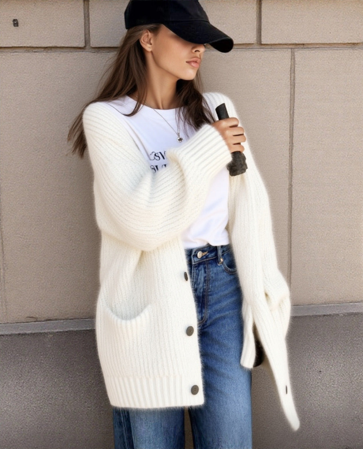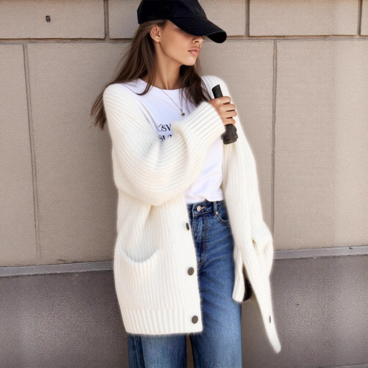Damen Grobstrick-Cardigan mit einzigartigen Strukturmustern und praktischen Taschen Heidi-Mode