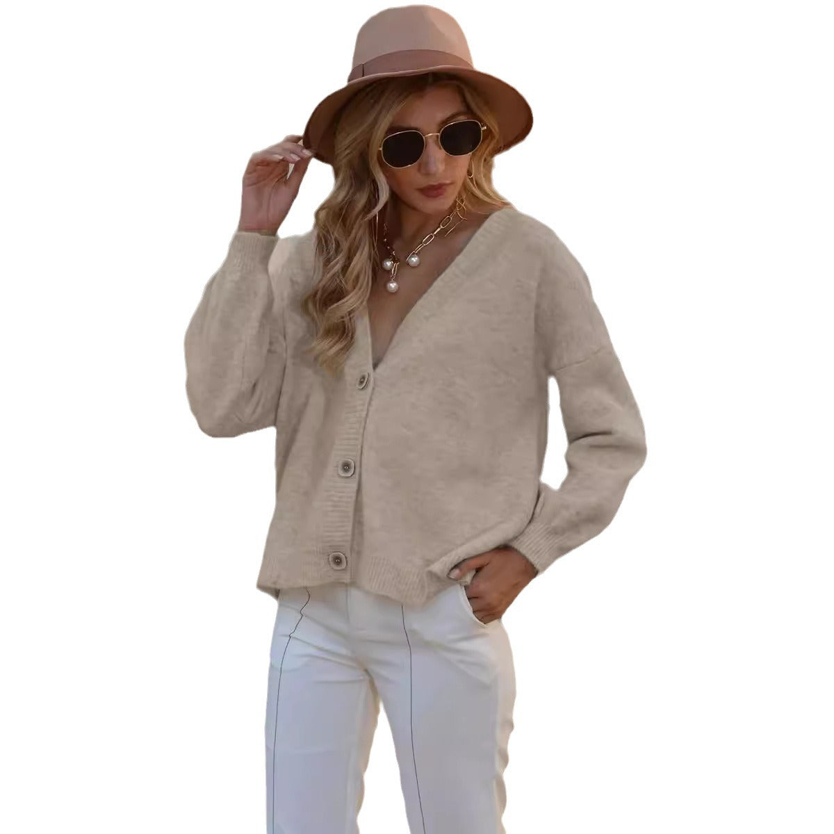 Damen Grobstrickcardigan mit lässigem V-Ausschnitt und dekorativen Knopfdetails Heidi-Mode