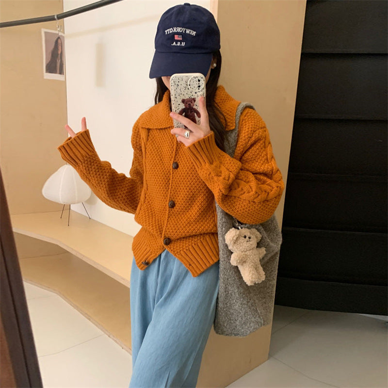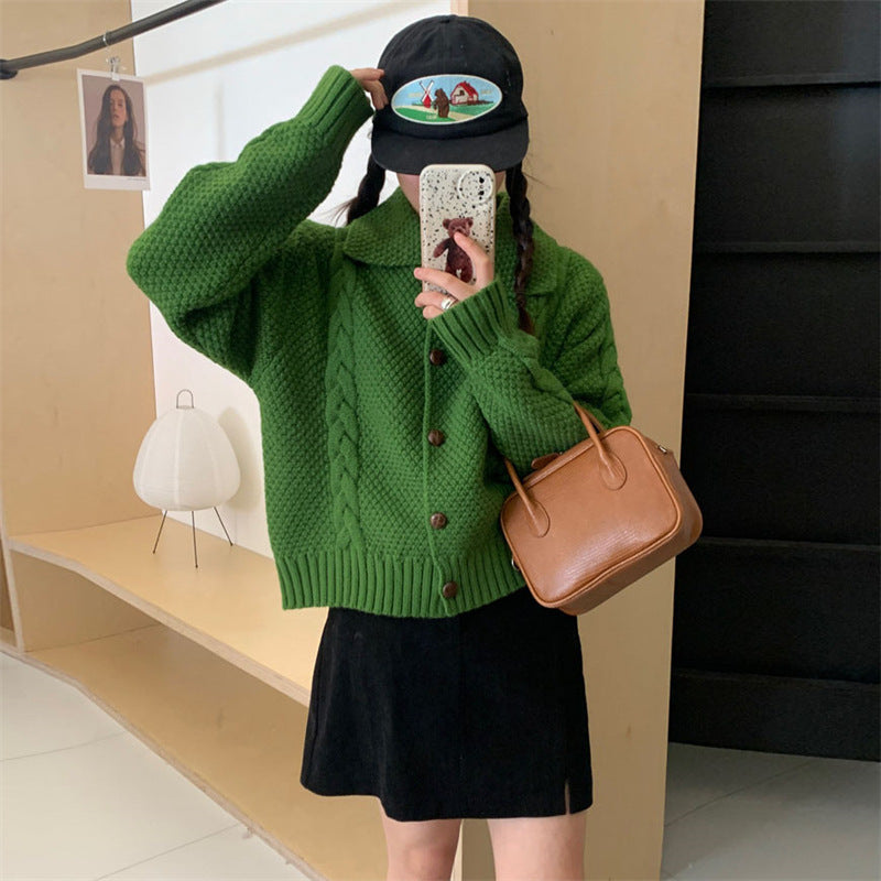 Damen Grobstrickjacke mit kontrastierenden Knöpfen und strukturiertem Design Heidi-Mode