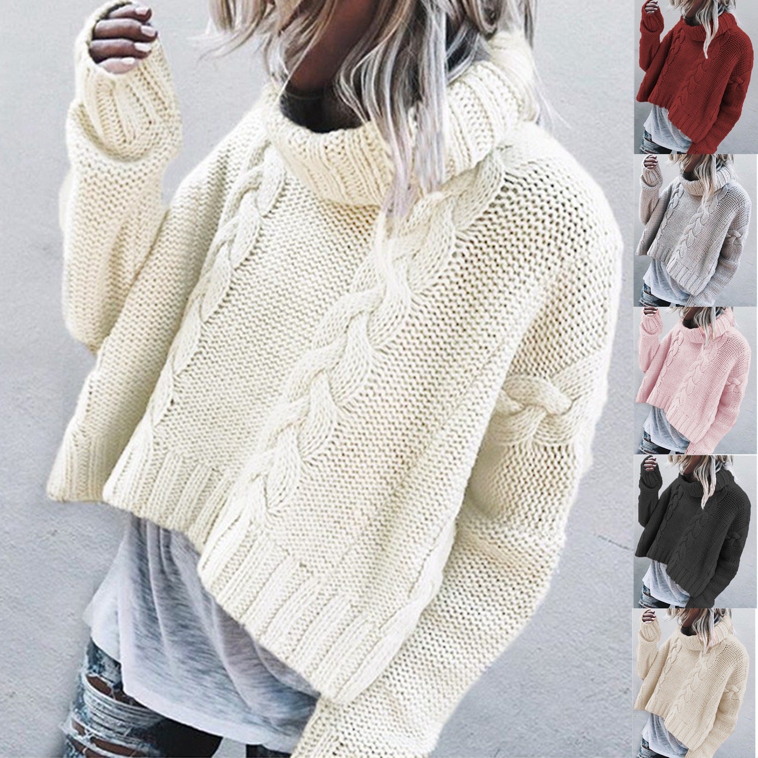 Damen Grobstrickpullover mit voluminösem Rollkragen und Zopfmuster Heidi-Mode