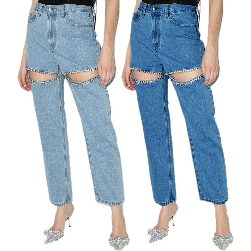 Damen Jeans mit dekorativen Cut-Outs und Strassverzierungen Heidi-Mode