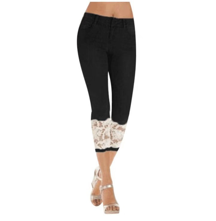 Damen Jeanshose mit Spitzenverzierung und figurbetontem Schnitt Heidi-Mode