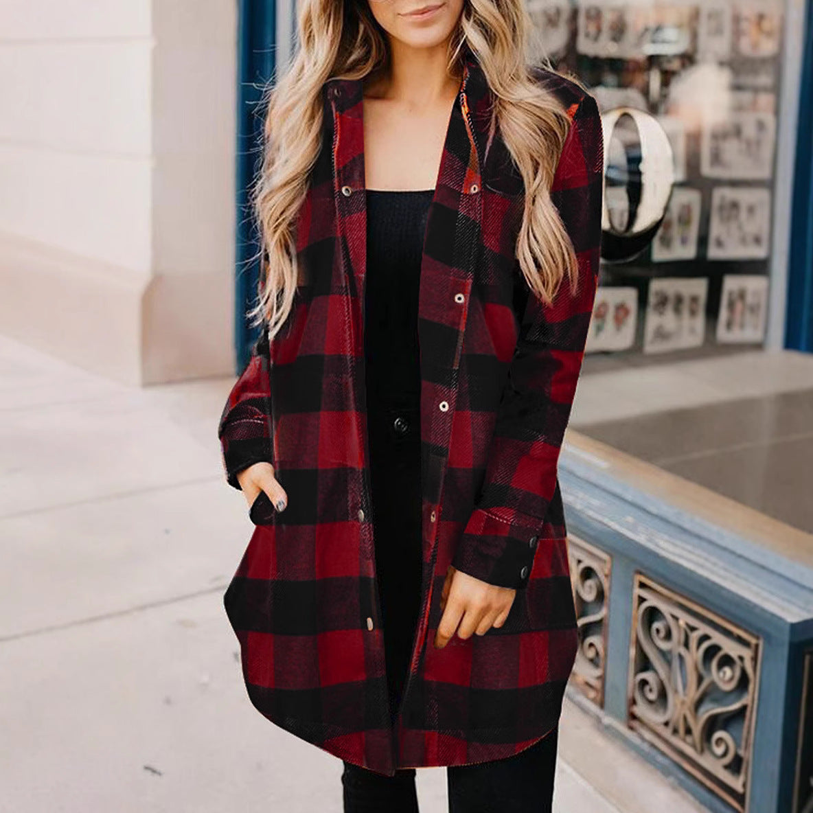 Damen Karierte Overshirtjacke aus weichem Stoff Heidi-Mode