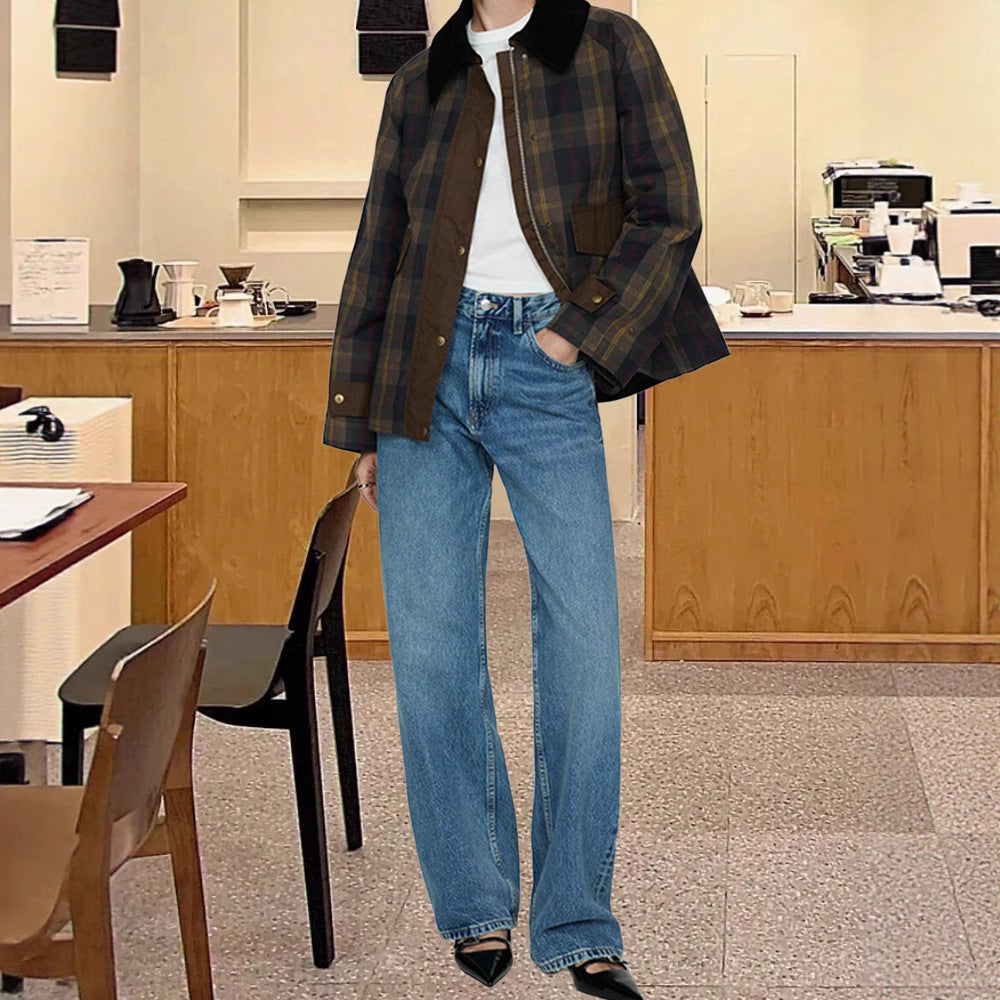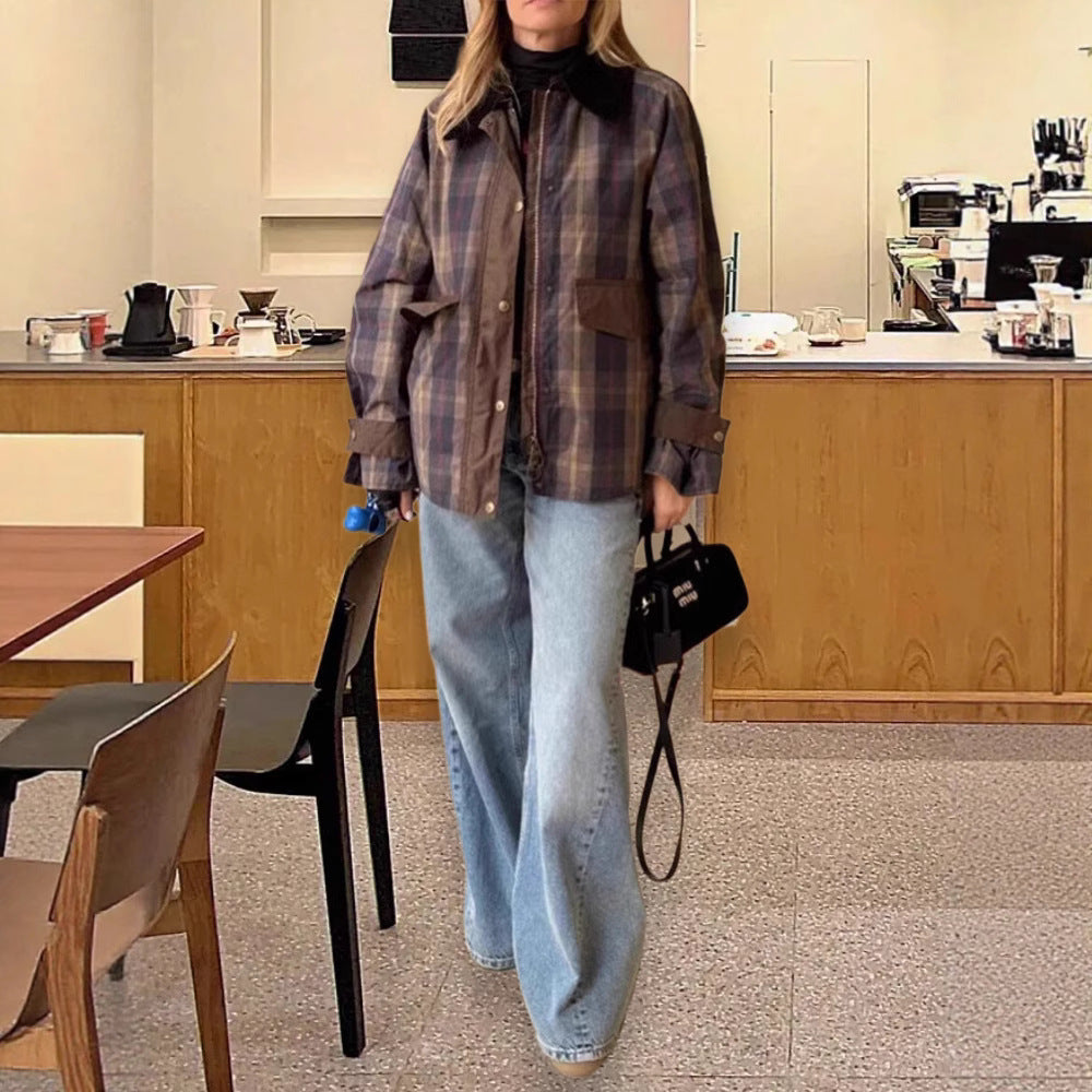 Damen Karierte Utility-Jacke mit praktischem Button-Detail und lässigem Schnitt Heidi-Mode