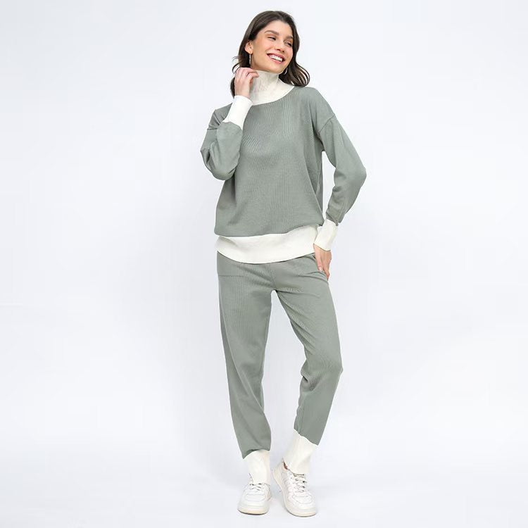 Damen komfortables Strick-Loungewear-Set mit hohem Kragen und elastischen Bündchen Heidi-Mode
