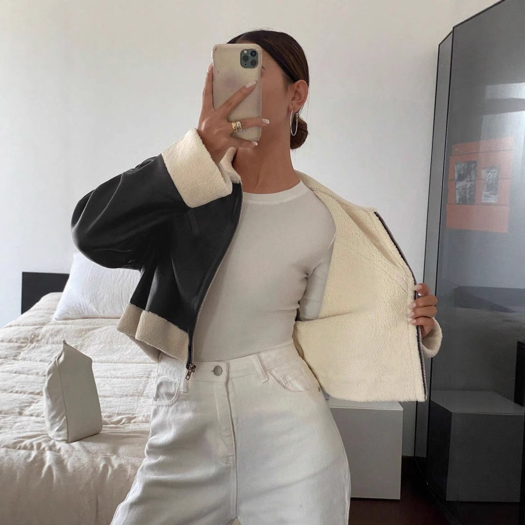 • Design: Modischer Biker-Stil mit einem auffälligen Reißverschluss und einem taillierten Schnitt, der die Silhouette schmeichelt.